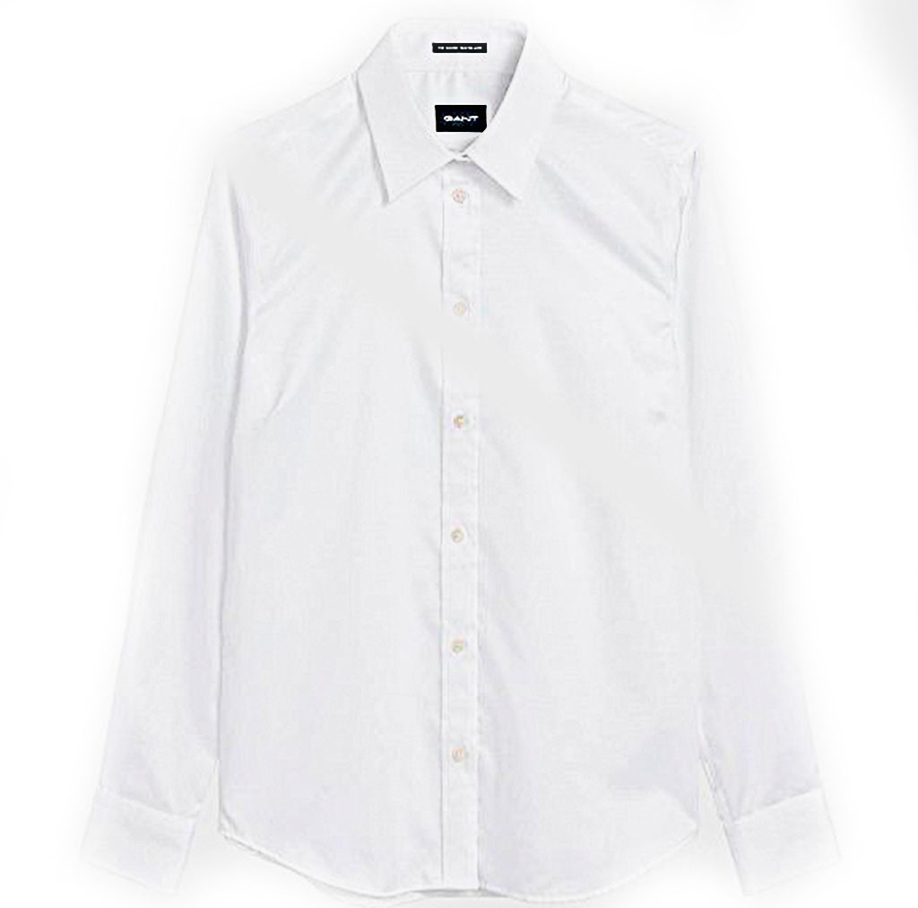 Белая рубашка GANT подобрана специально с сатиновым отливом, чтобы поддержать лацканы из блестящий ткани на пиджаке.
