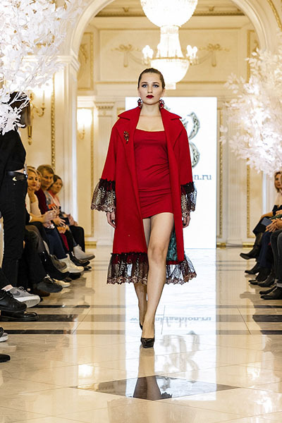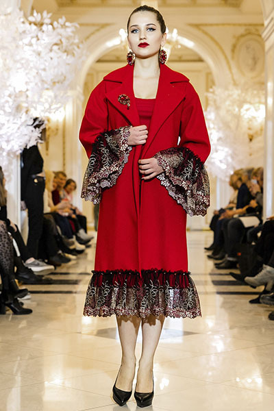Красное кашемировое пальто из новой коллекции ОСЕНЬ-ЗИМА 2019 с отделкой кружевом