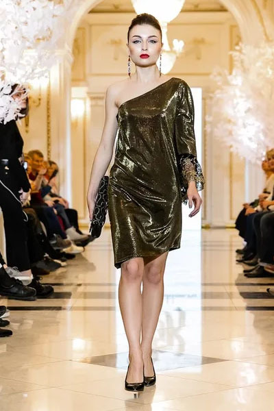 Асимметричное платье из коллекции ОСЕНЬ-ЗИМА 2019 с рукавом-воланом и отделкой